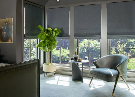 All roman shades are crafted by hand in the Yung Atelier workroom and installed by our in-house production team. Linings are available in various weights and are 100% cotton, other than our 3-pass blackout lining. Styles are not limited to those shown below. To reach out for a proposal or begin the creation process, contact us here.